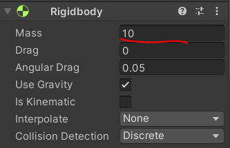 우선, 플레이어에게 RigidBody를 설정 해 주고 Mass를 10으로 설정 해 준다.