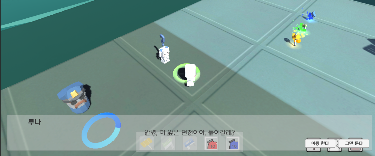 이 부분은 새롭게 대화 창을 추가 할까 생각 하다가, 이동 버튼만 구분하여 주면 될 것 같다는 생각으로 분기를 만들어 알맞는 이동하기 버튼을 활성화 하는 것으로 하였다.