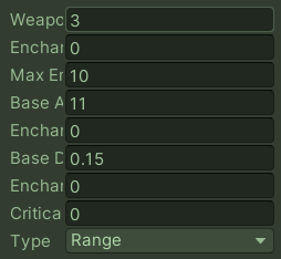 WeaponItemInfo weaponinfo = new WeaponItemInfo(item.value, 0 ,weapon.maxEnchant, weapon.Damage, weapon.AtkDelay, weapon.type,weapon.criticalPercent);